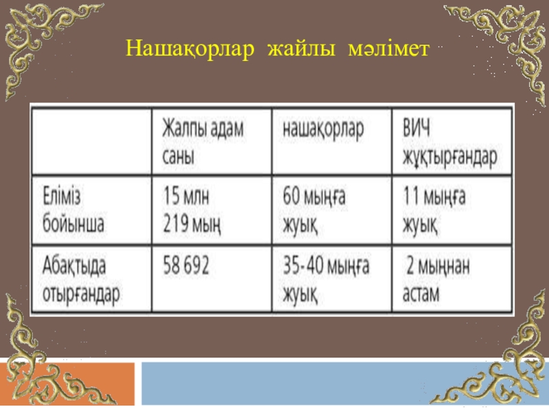 Слайд 13Нашақорлар жайлы мәлімет