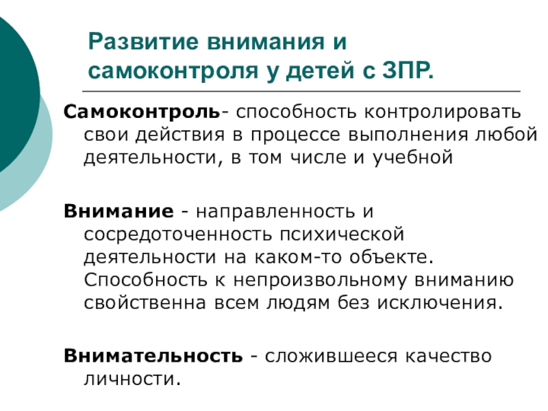 Развитие внимания и самоконтроля у детей с ЗПР.