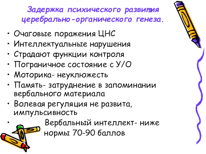 Слайд 8Задержка психического развития церебрально-органического генеза.