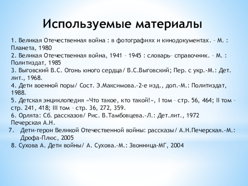 8. Сухова А. Дети войны/ А. Сухова.-М.: Звонница-МГ, 2004