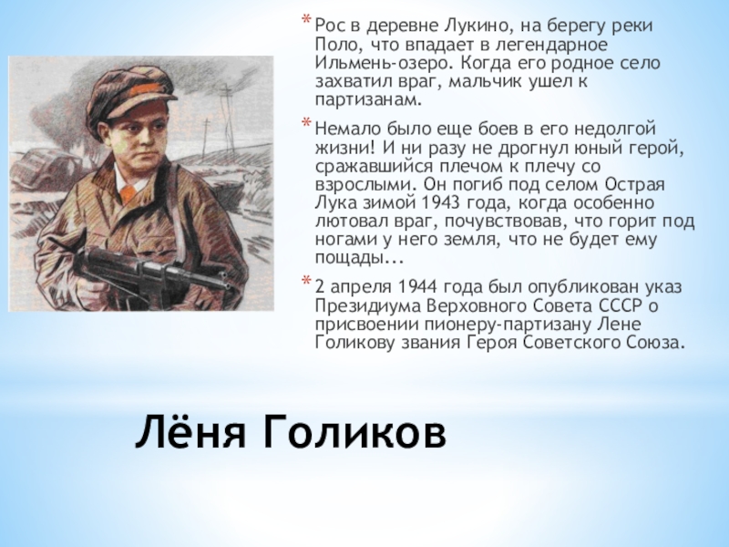 Слайд 6Лёня Голиков