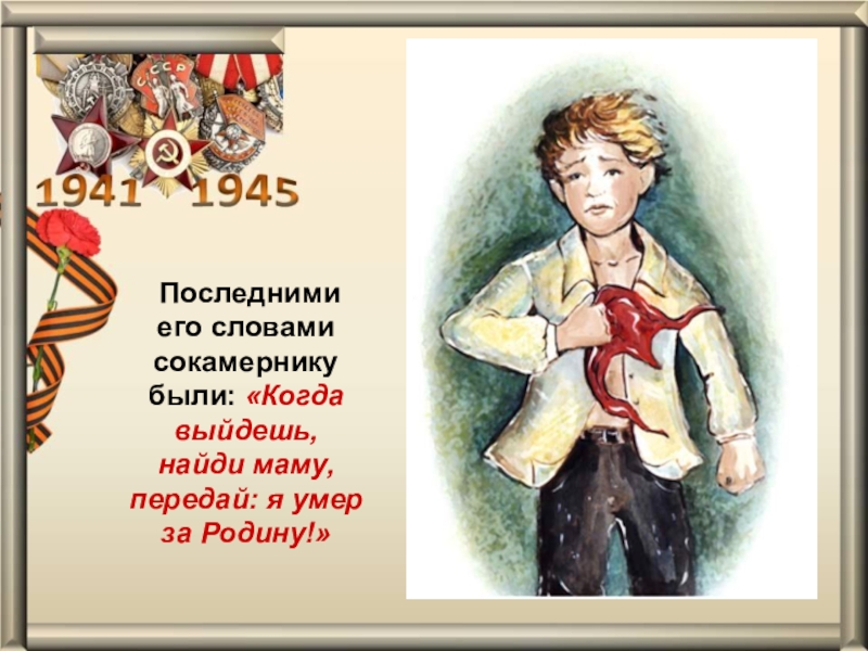 Последними его словами сокамернику были: «Когда выйдешь, найди маму, передай: я умер за Родину!»