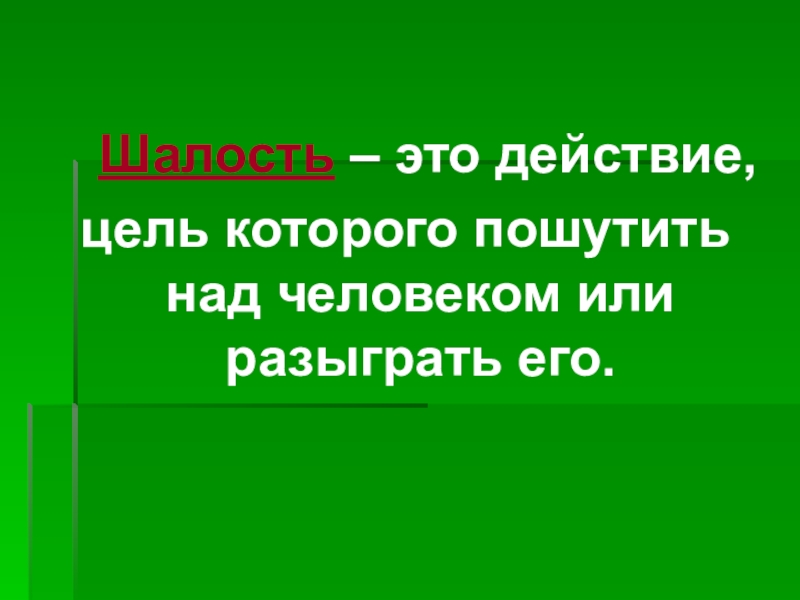 Слайд 4 Шалость – это действие,