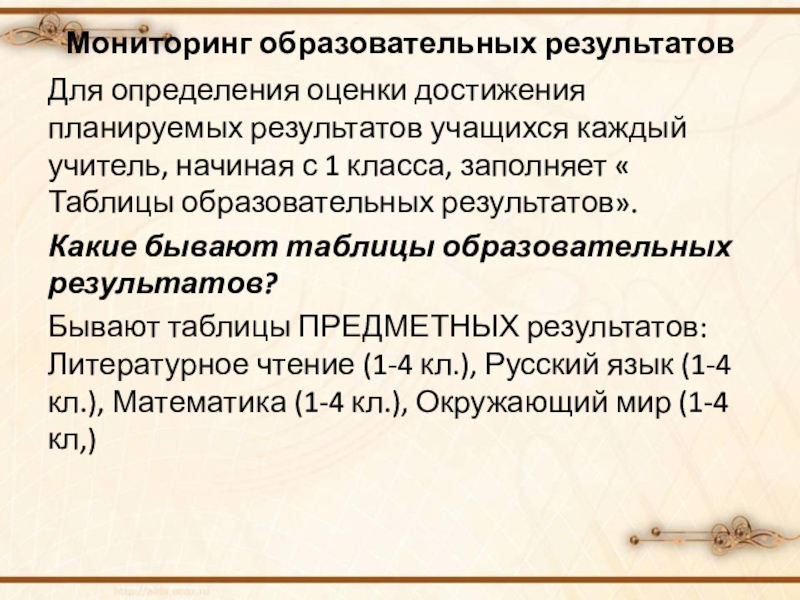 Мониторинг образовательных результатов