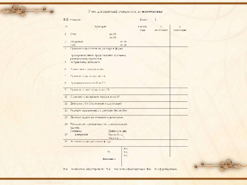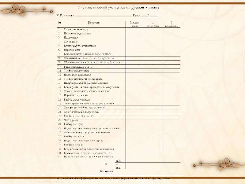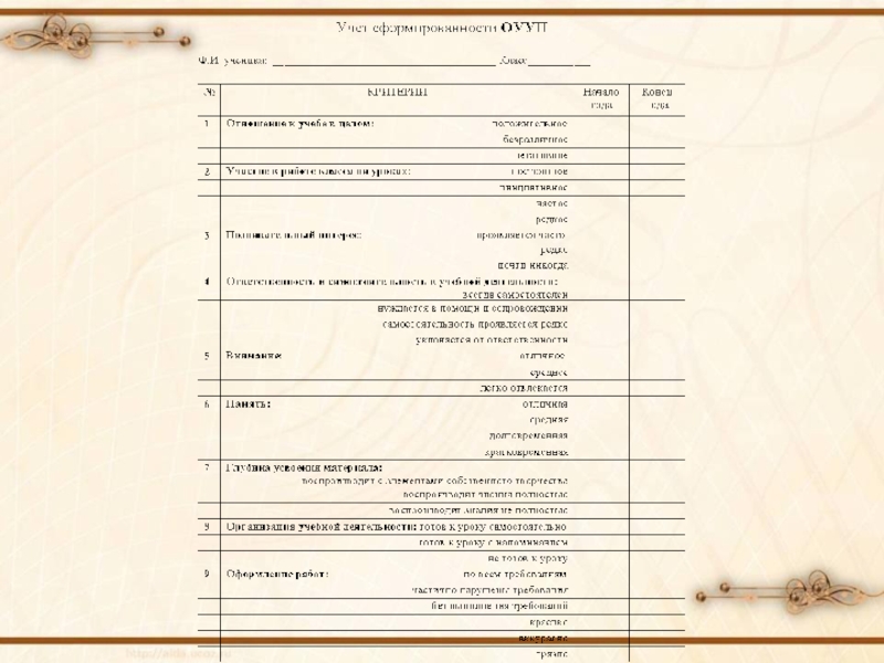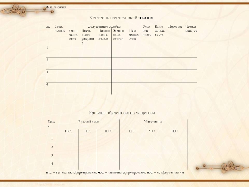 начиная с 1 класса, заполняет « Таблицы образовательных результатов».