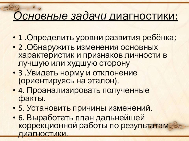 Слайд 5Основные задачи диагностики:
