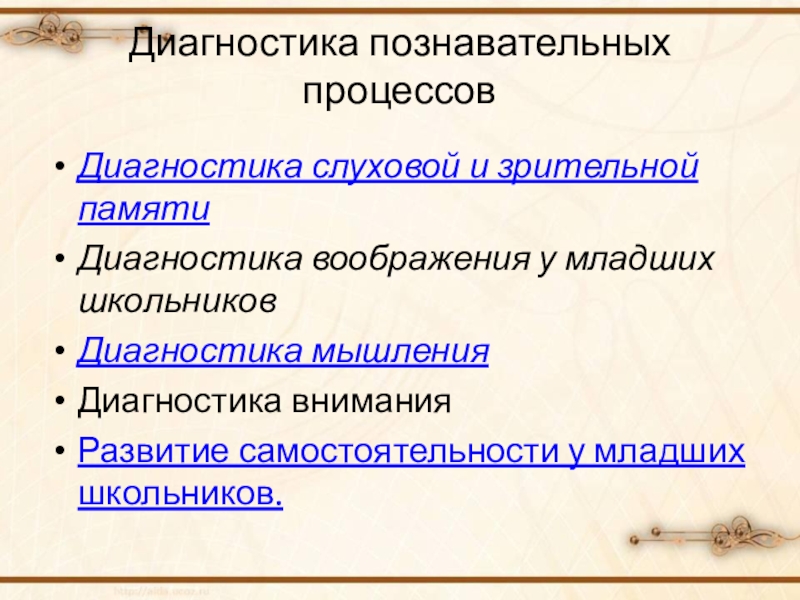 Слайд 19Диагностика познавательных процессов
