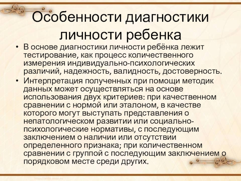 Слайд 4Особенности диагностики личности ребенка