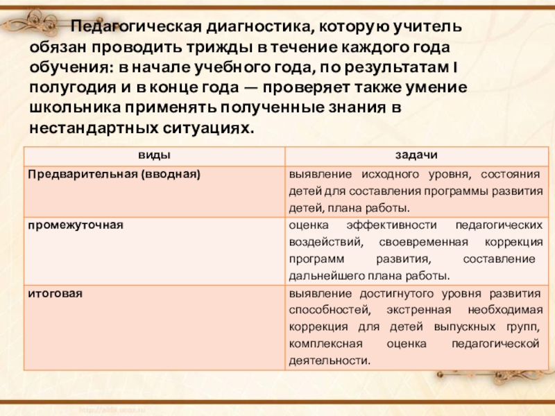 Слайд 9 Педагогическая диагностика, которую учитель обязан