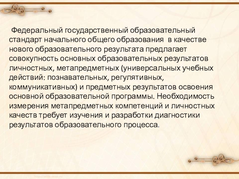 Слайд 13Федеральный государственный образовательный стандарт начального общего образования в качестве нового образовательного