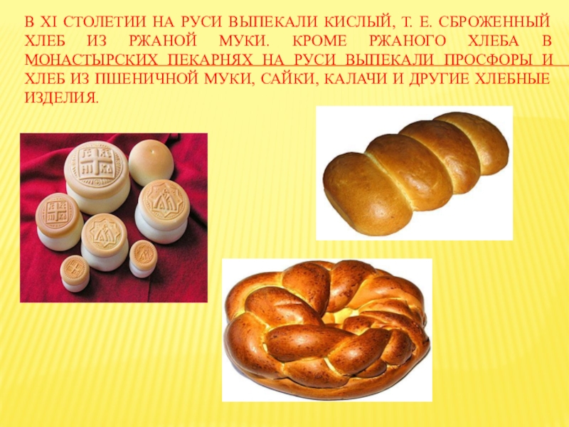 Слайд 10В XI столетии на Руси выпекали кислый, т. е. сброженный хлеб