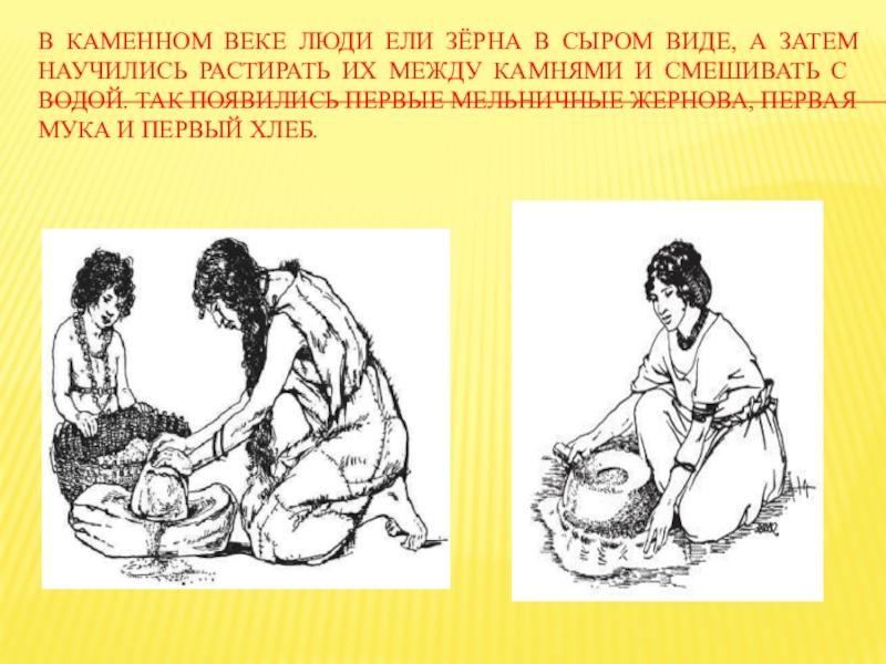 Слайд 7В каменном веке люди ели зёрна в сыром виде, а затем