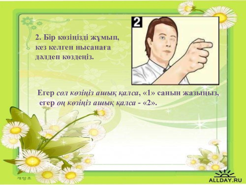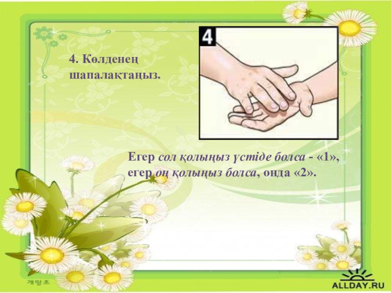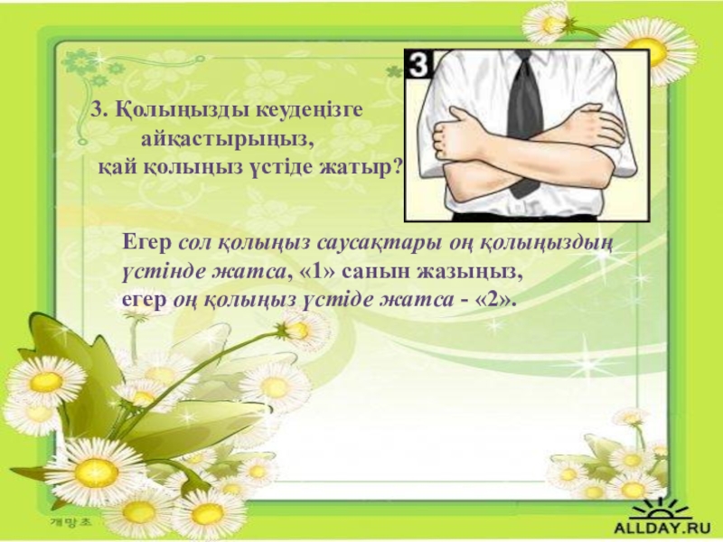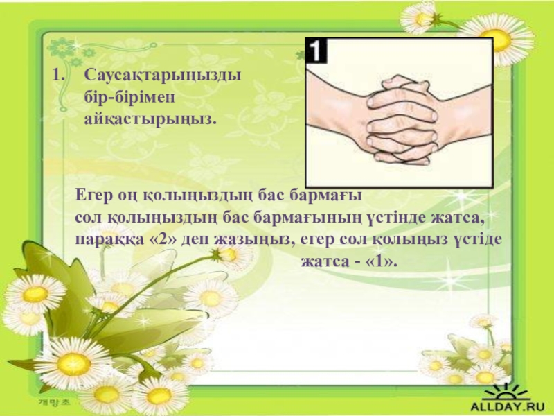 параққа «2» деп жазыңыз, егер сол қолыңыз үстіде