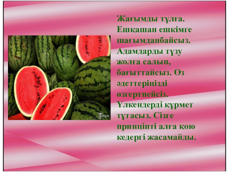 Слайд 12Жағымды тұлға. Ешқашан ешкімге шағымданбайсыз. Адамдарды түзу жолға салып, бағыттайсыз. Өз