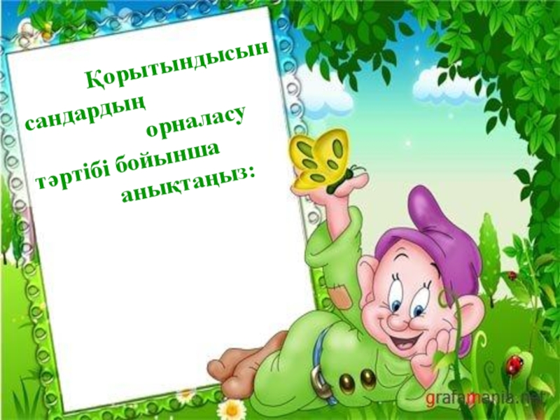 Слайд 6 Қорытындысын сандардың орналасу тәртібі бойынша анықтаңыз: