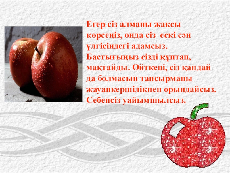 Слайд 16Егер сіз алманы жақсы көрсеңіз, онда сіз ескі сән үлгісіндегі адамсыз.