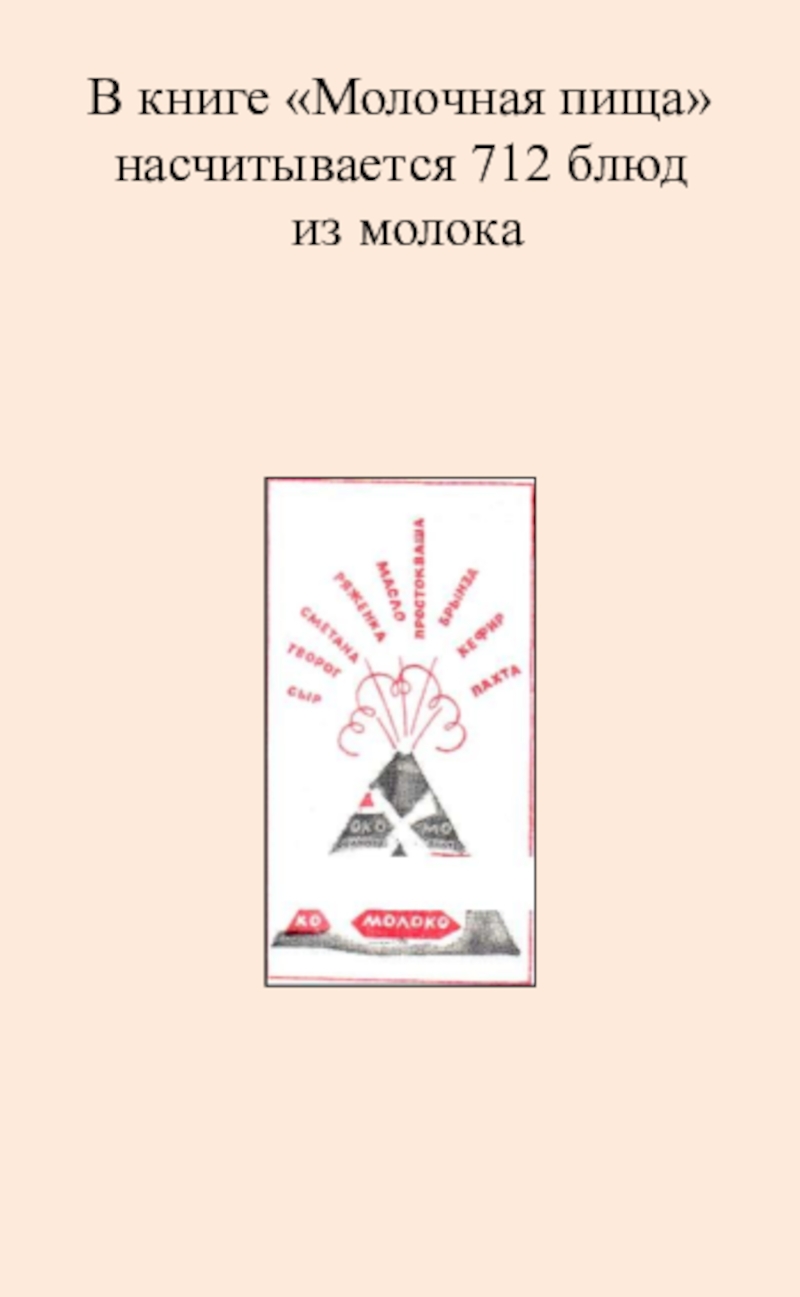 Слайд 21В книге «Молочная пища» насчитывается 712 блюд