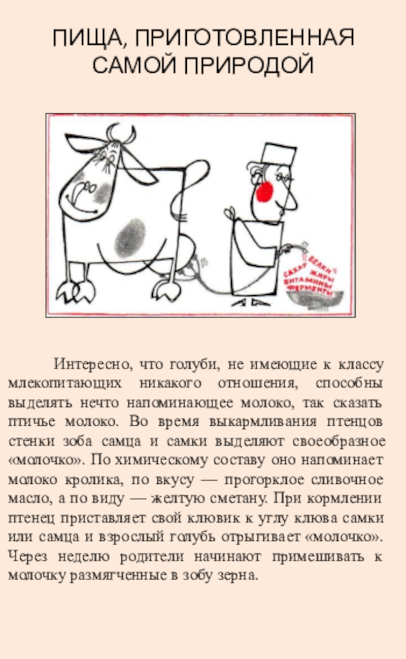 находится молоко… пища, приготовленная самой природой, отличающаяся легкой удобоваримостью и питательностью, по сравнению с другими видами пищи…»