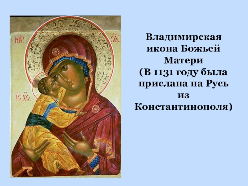 Слайд 8Владимирская икона Божьей Матери (В 1131 году была прислана на Русь