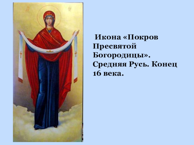 Слайд 3 Икона «Покров Пресвятой Богородицы». Средняя Русь. Конец 16 века.