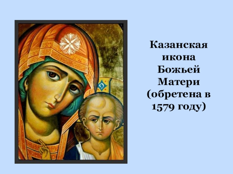 Слайд 10Казанская икона Божьей Матери (обретена в 1579 году)