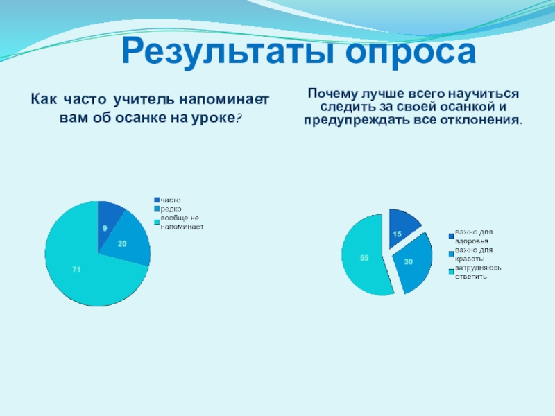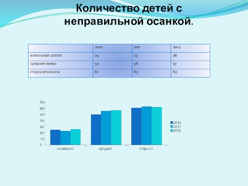 если при этом не уметь все это правильно «расположить» в себе, то вы начнете терять здоровье; достаточно просто принять неправильную осанку – сгорбиться, ссутулиться, искривить позвоночник. Около половины учащихся нашей школы и страны(90%) в целом страдают этим заболеванием, но серьезно к этому относится лишь небольшое количество детей.
