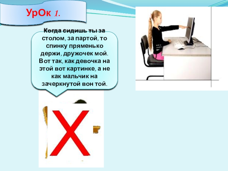 Слайд 20Когда сидишь ты за столом, за партой, то спинку пряменько держи,