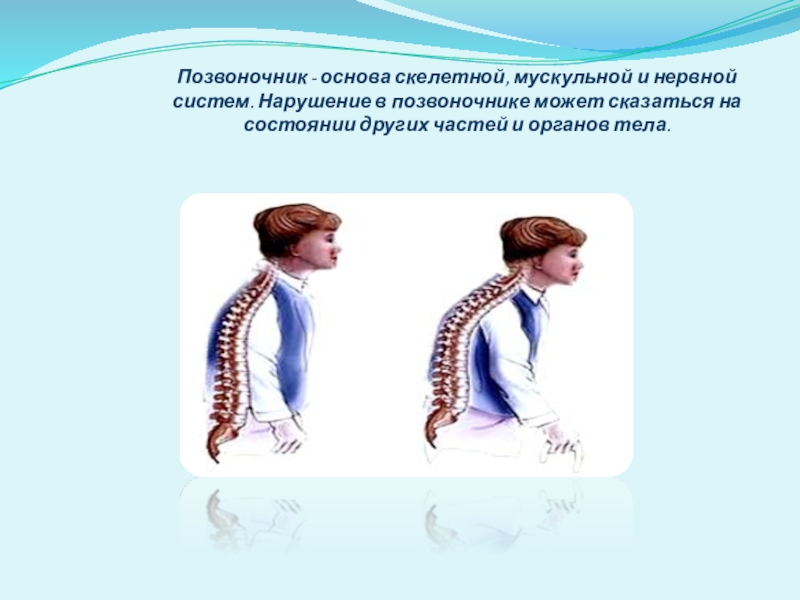 Слайд 5Позвоночник - основа скелетной, мускульной и нервной систем. Нарушение в позвоночнике