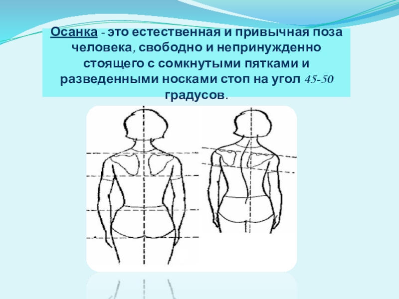 Слайд 4Осанка - это естественная и привычная поза человека, свободно и непринужденно