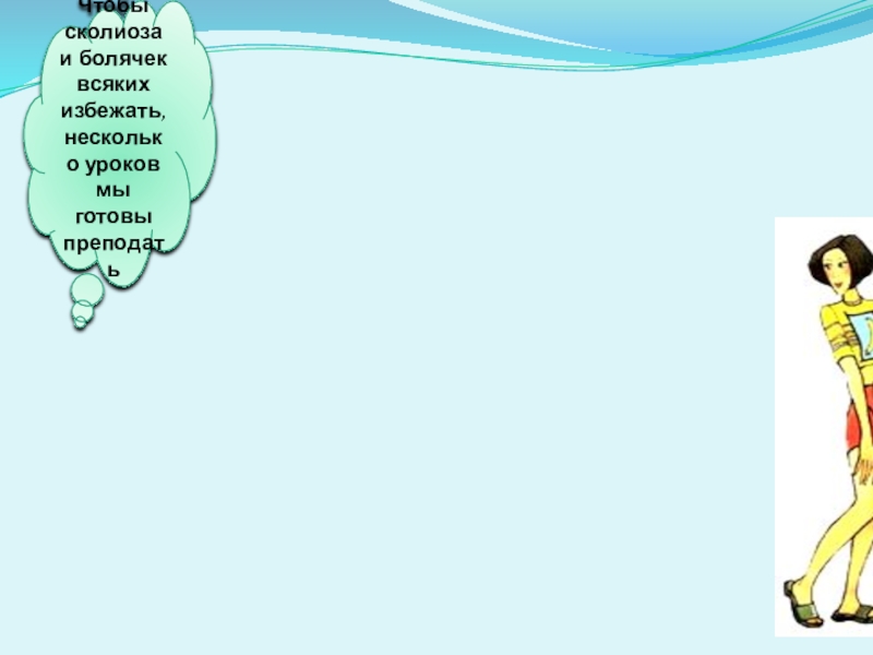 Слайд 19Чтобы сколиоза и болячек всяких избежать,