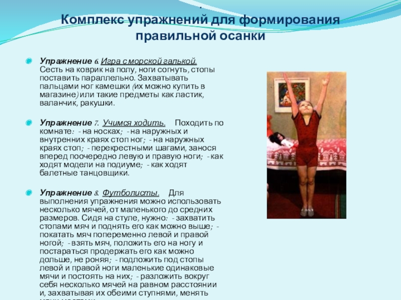 Слайд 13Комплекс упражнений для формирования правильной осанки.