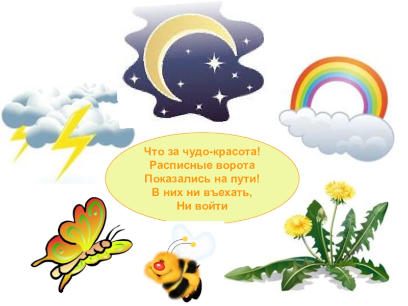 Что за чудо-красота! Расписные ворота Показались на пути! В них ни въехать, Ни войти