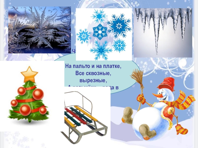 Что за звёздочки сквозные На пальто и на платке, Все сквозные, вырезные, А возьмёшь