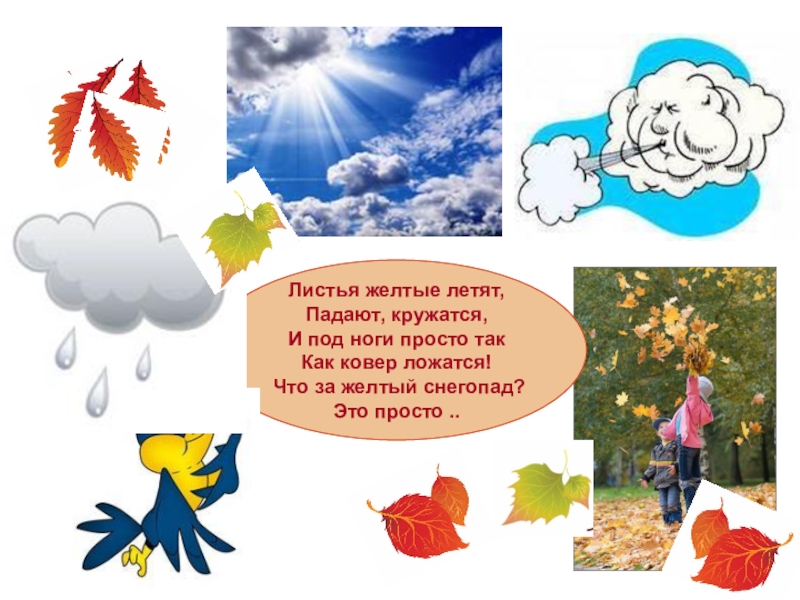 Листья желтые летят,  Падают, кружатся,  И под ноги просто так  Как ковер ложатся!