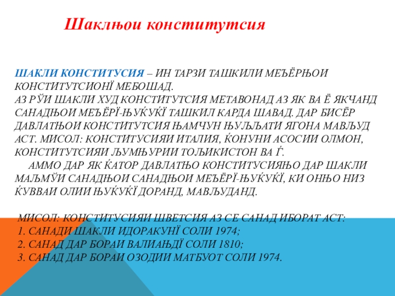 Шаклњои конститутсия