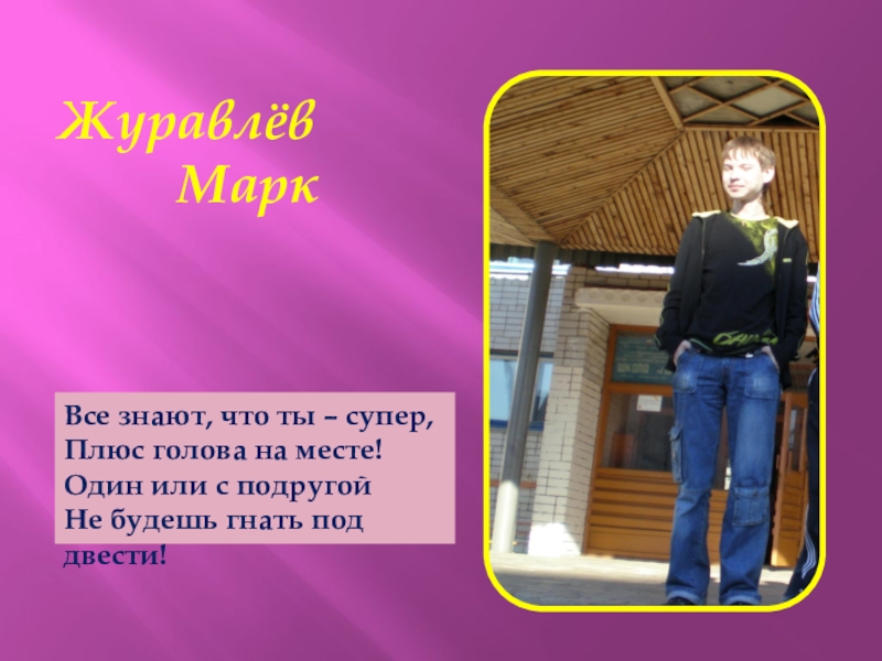 Журавлëв     МаркВсе знают, что ты – супер,Плюс голова на месте!Один или с подругойНе