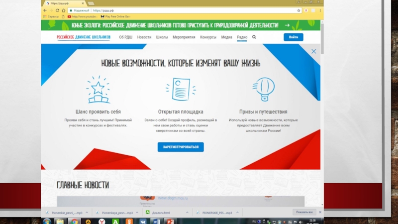 Презентация для классного часа (беседы) От пионеров до РДШ Педагогика