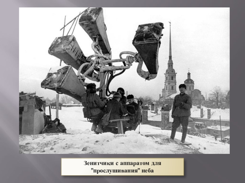 Слайд 26Зенитчики с аппаратом для "прослушивания" неба
