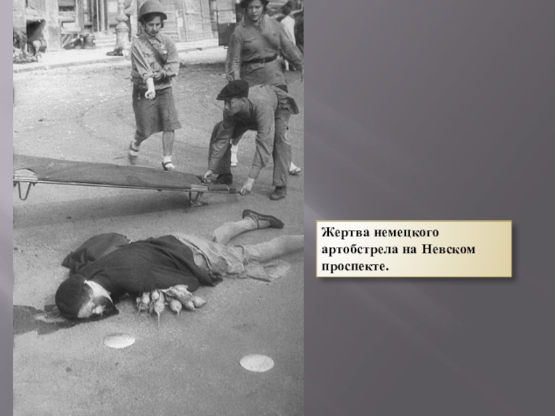 Слайд 21Жертва немецкого артобстрела на Невском проспекте.