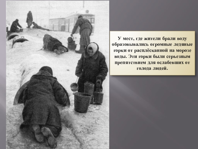 расплёсканной на морозе воды. Эти горки были серьезным препятствием для ослабевших от голода людей.