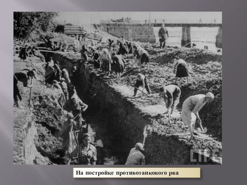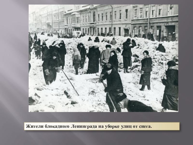 Слайд 25Жители блокадного Ленинграда на уборке улиц от снега.