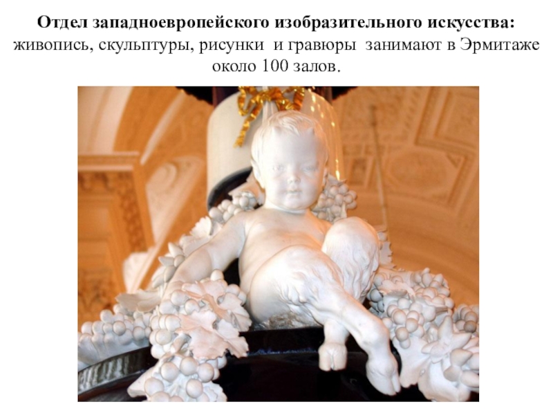 Отдел западноевропейского изобразительного искусства: живопись, скульптуры, рисунки  и гравюры  занимают в Эрмитаже около 100 залов.