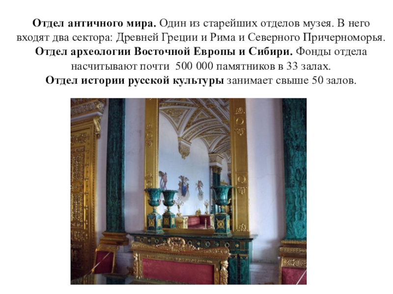 Слайд 8Отдел античного мира. Один из старейших отделов музея. В него  входят