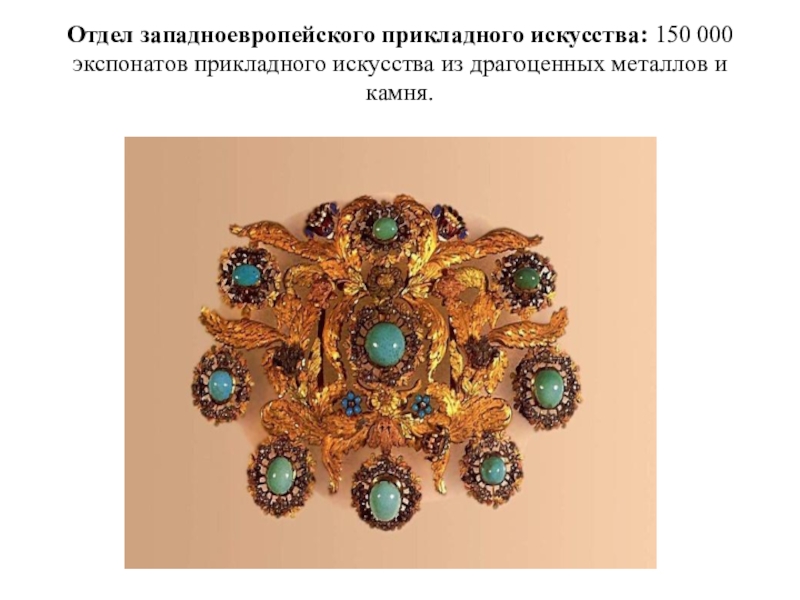 Слайд 7Отдел западноевропейского прикладного искусства: 150 000 экспонатов прикладного искусства из драгоценных