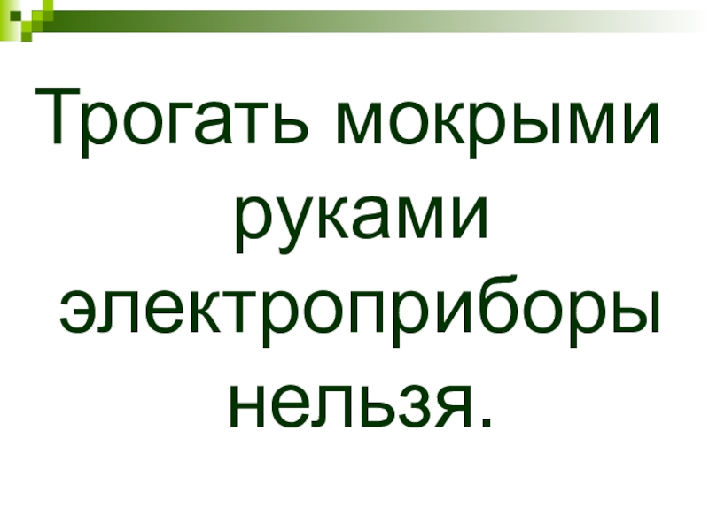 Слайд 10Трогать мокрыми руками электроприборы нельзя.