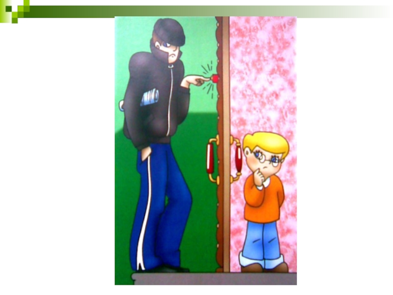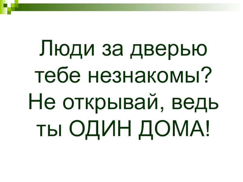 Слайд 14Люди за дверью тебе незнакомы? Не открывай, ведь ты ОДИН ДОМА!