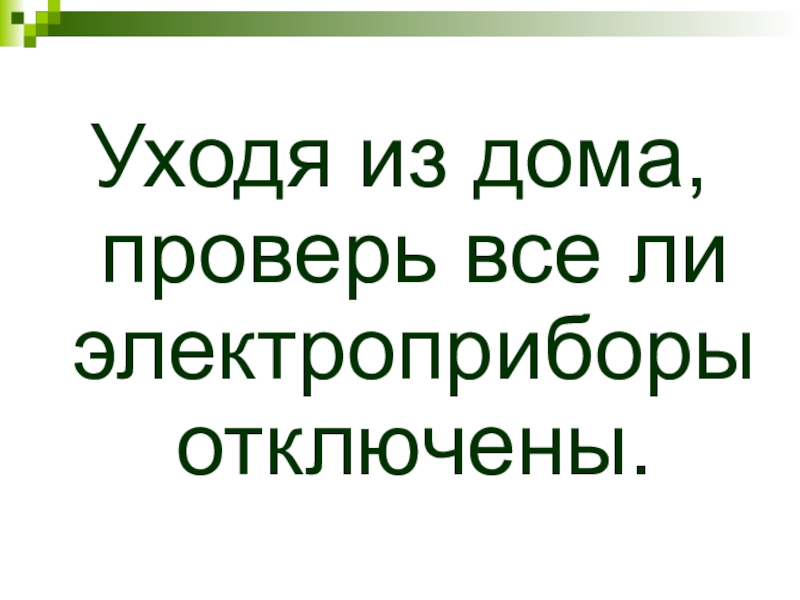 Слайд 5Уходя из дома, проверь все ли электроприборы отключены.