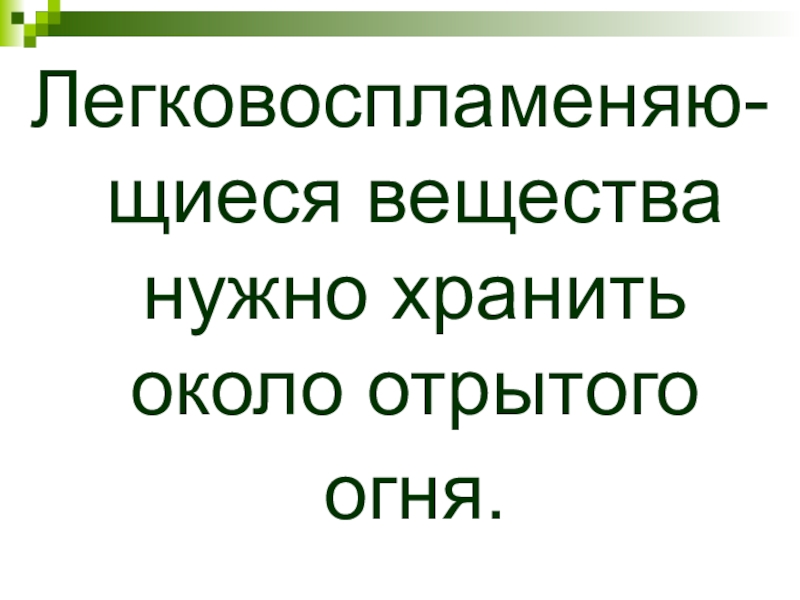 Слайд 11Легковоспламеняю-щиеся вещества нужно хранить около отрытого огня.