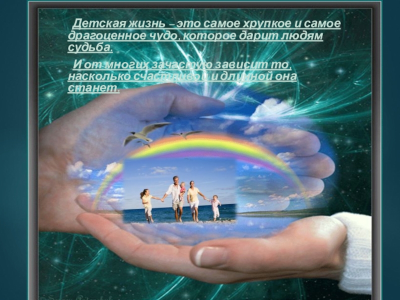 Слайд 12 Детская жизнь – это самое хрупкое и самое драгоценное чудо, которое
