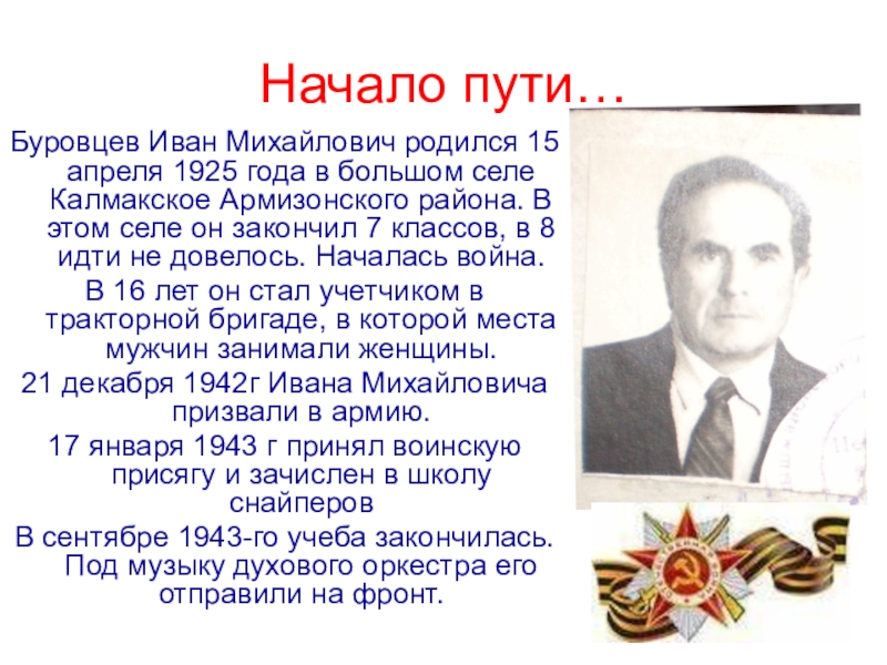 Буровцев Иван Михайлович родился 15 апреля 1925 года в большом